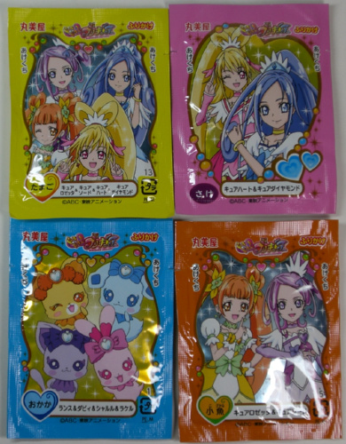 丸美屋のドキドキプリキュアふりかけの後期分。 やはりチームを組んでる様でキャラ単体の小袋は見当たらず。 |
