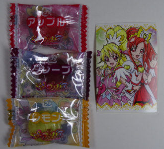 フルタのプリキュアキャンデー。 なぜか新旧同じ棚に混ぜて置いてあったのをこれ幸いと購入。 |
