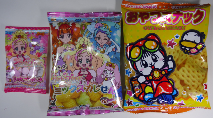 値段の割りに中身は少なめ。 ほとんど入れ物代のはずなのでこんなものでしょう。 いちごラムネとミックスカレーせんと無関係なおやつスナック。 |