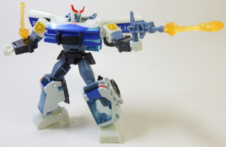 アメリカンなポリスカーにトランスフォーム。 変形前後ともなかなかの端整さが魅力的な玩具です。 |