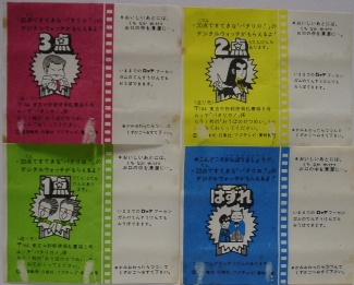点数券を20点分集めると、パタリロ!のデジタルウォッチがもらえた様です。 後の奇面組ガムと比べると、3点券が存在する代わりにハズレの確率が高く、 3点券と2点券自体がレアっぽいような印象を受けました。 |