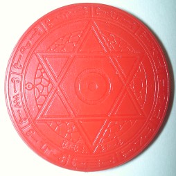 パッケージの大きさはトランスフォーマーガムと同じ。前期は主役の魔動王3体が、 後期はそれらがスーパー化したものがラインナップされていました。 魔動王を召喚する魔法陣をかたどった台座 がついており、よく見るとマジカル語で 名前が書かれている辺り、なかなか細かいです。 |