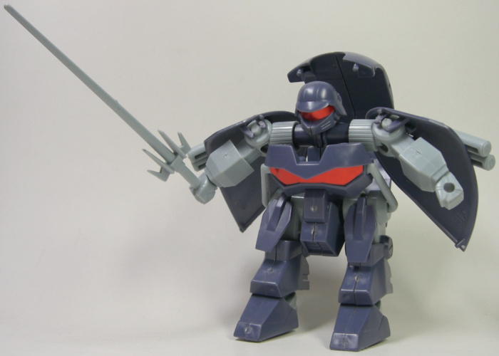 背中アーマーを後ろに回し、顔を上げれば変形完了。 両肩の光線砲、バイブラスターも動かせます。 |